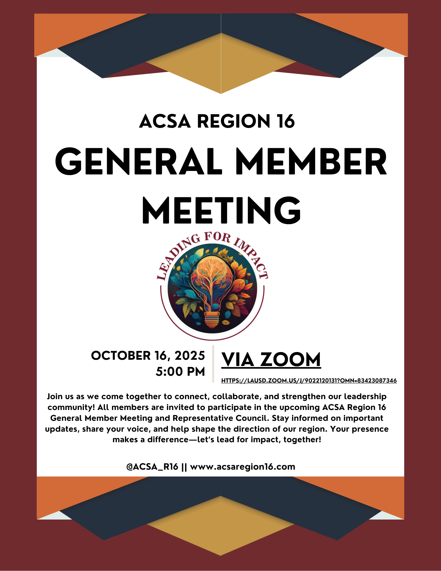 On behalf of the Region 16 President, Dr. Piedad Sanchez, you are cordially invited to attend the upcoming General Member Meeting.