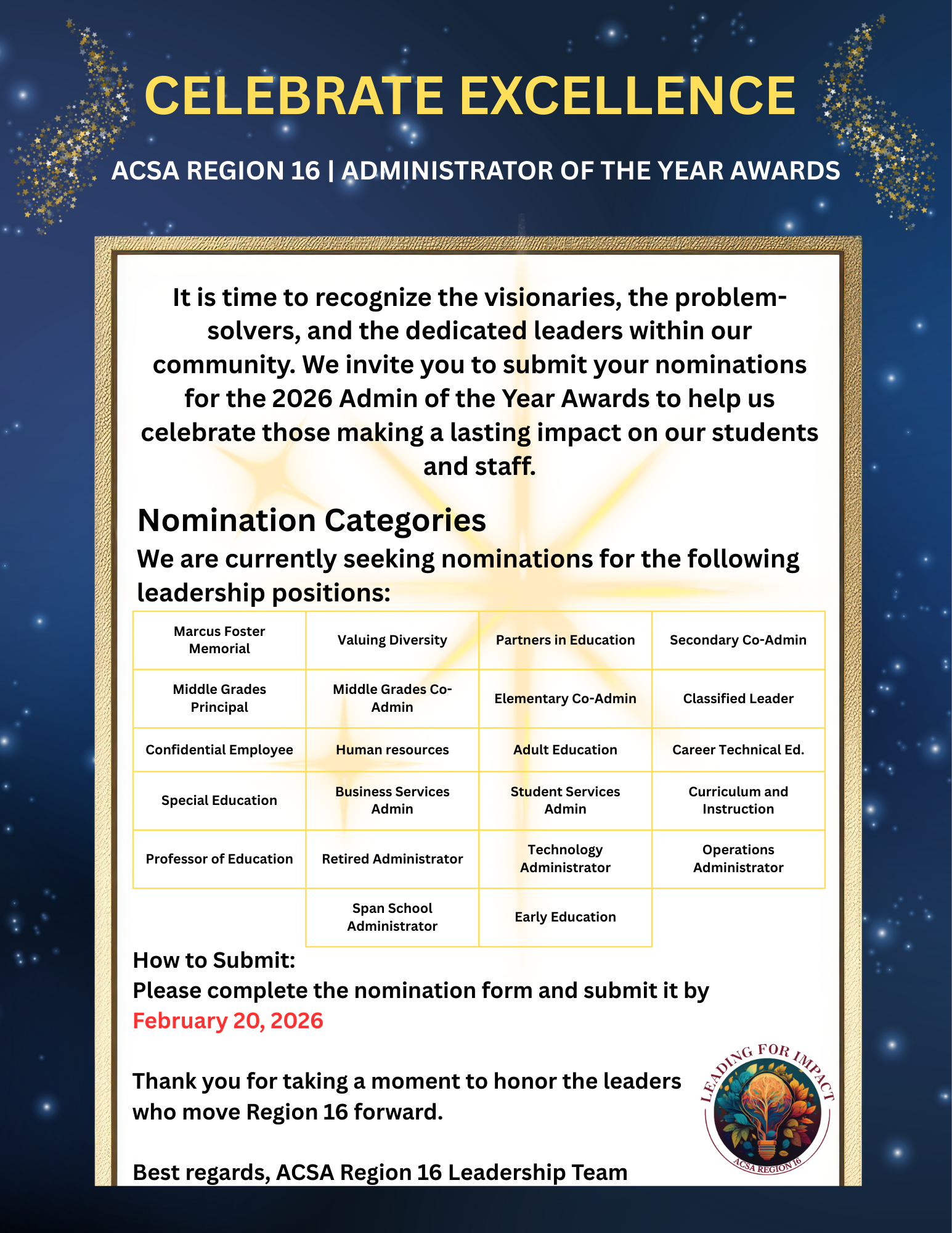 Administrator of the Year Awards Nominations