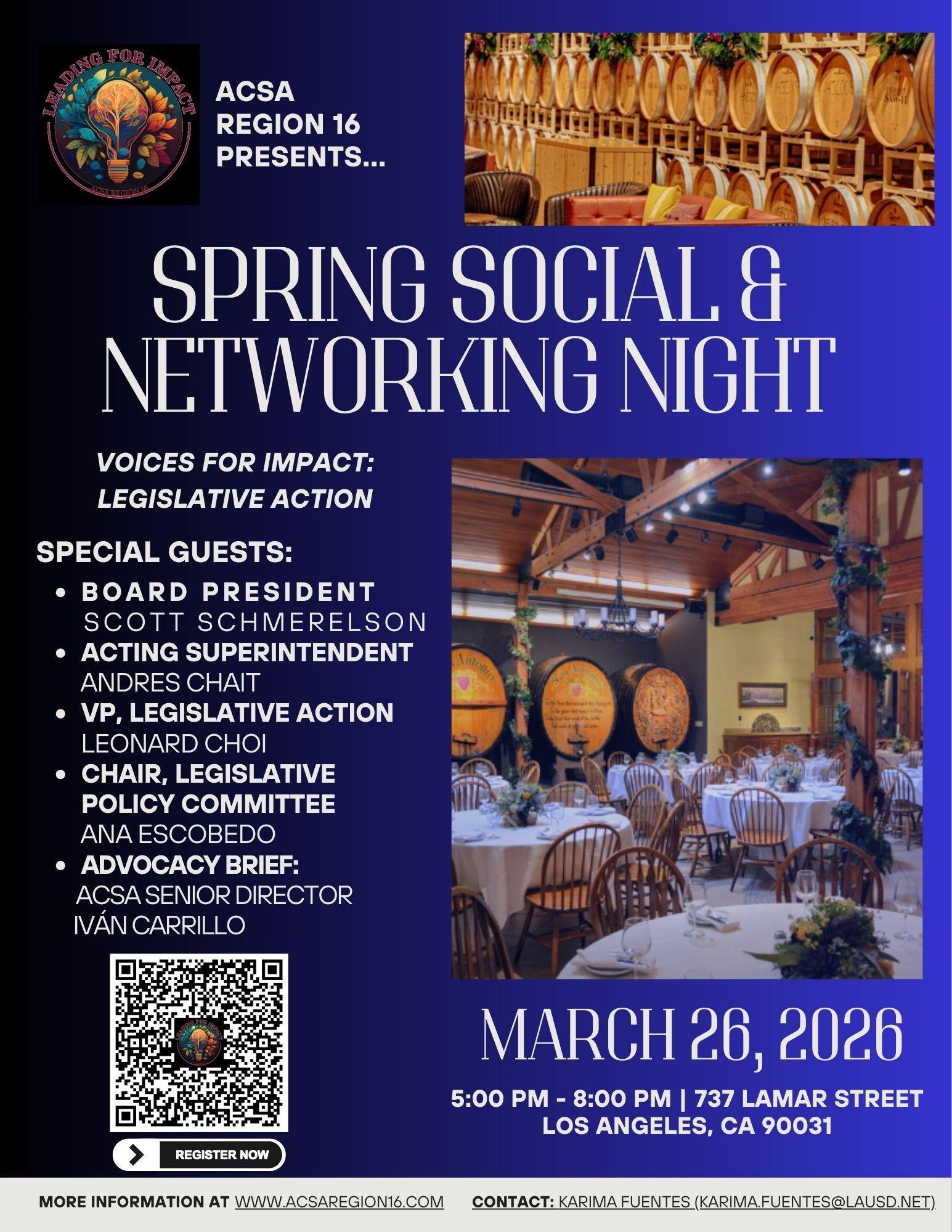 Get ready for a fun night of mingling and making connections at the ACSA Region 16 Spring Social & Networking Night!